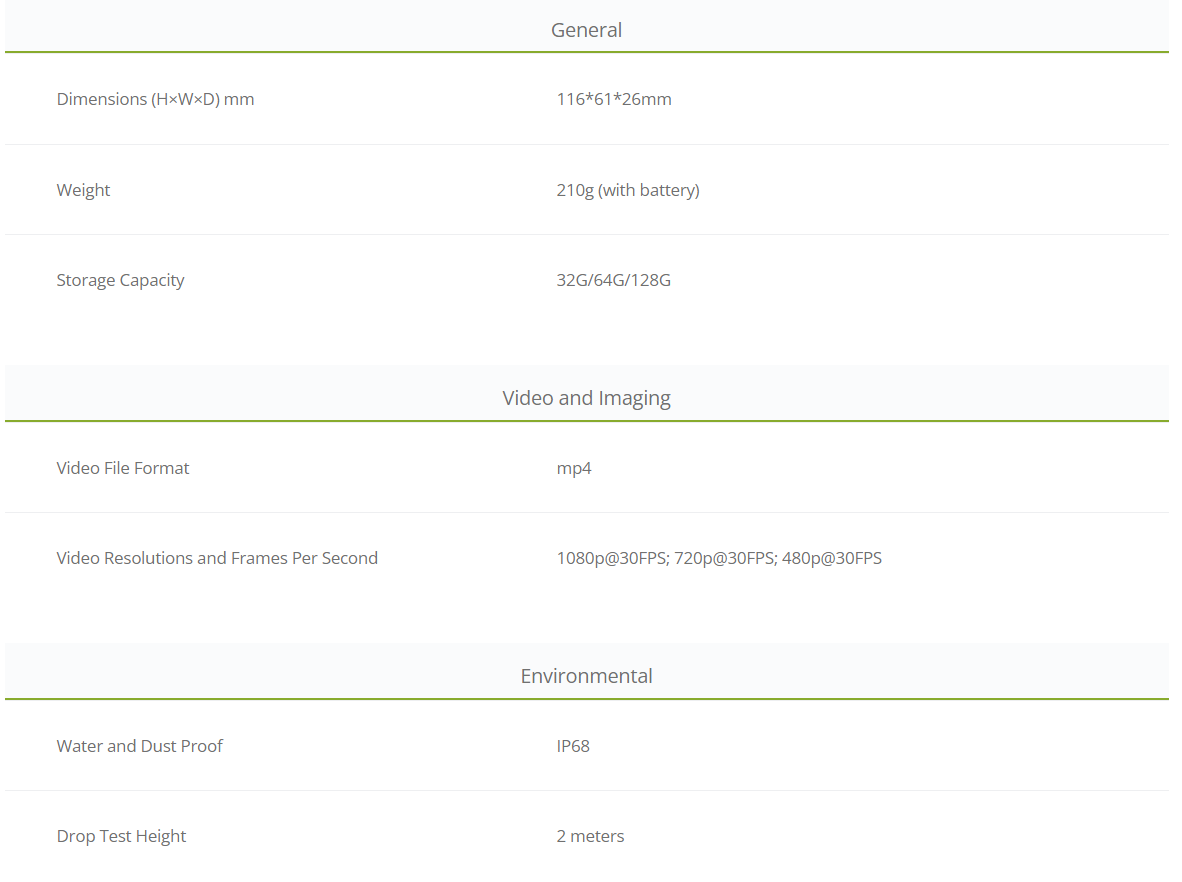 The super wide-angle camera allows you to capture more objects in a broader scope. Even at most one meter away, the body camera can capture the hand actions at close quarters.